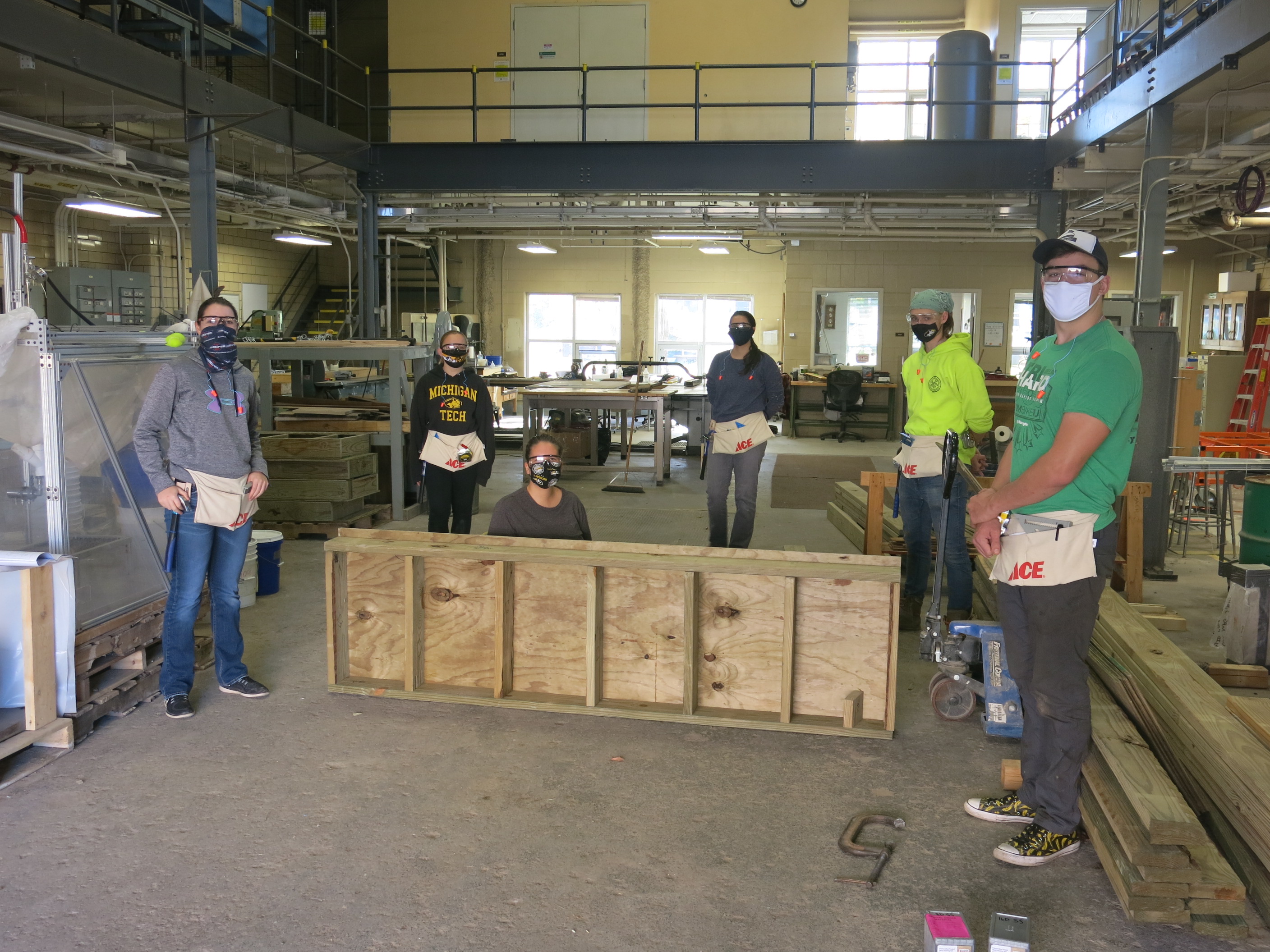 The Tiny House Build project began with a goal of designing a sustainable and affordable tiny house for cold climates, like in the Upper Peninsula, to provide a model for green, energy-efficient housing. The team began researching and developing innovative solutions for making common building practices more sustainable, in addition to modeling thermal and energy performance of the team’s preliminary tiny house designs. Once the best option was modeled, students worked directly with the client to create construction drawings to bring the house from an idea to reality. The team constructed sections of the tiny house on campus. When complete, they installed them on the client’s property, where the house was fully finished and move-in ready. Finally, the team conducted testing to determine the success of the chosen design in terms of energy-efficiency and thermal performance.
